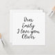 Cute personalizable text template: Dear Emily, I love you, Alexander. Click edit and change only the names or the entire text.