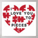 This illustration shows a red heart broken into puzzle pieces with the words "I LOVE YOU TO PIECES."