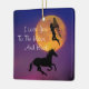Full Harvest Moon with Unicorns and fairies against a purple sky