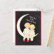 I Love You to the Moon and Back postcard. Vintage boy and girl over the moon in love, great for Valentine's Day.