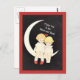 I Love You to the Moon and Back postcard. Vintage boy and girl over the moon in love, great for Valentine's Day.