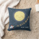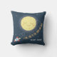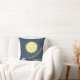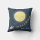 A throw pillow with a little rocket ship that circles the cute moon, leaving behind a heart loop trail. Stars and dots decorate the texture blue space background. The text reads "I Love You to the Moon and Back" is part of the design and not editable. Personalise with the little one's name to make a cute room decorative piece for the baby nursery.