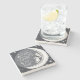 The coasters are gorgeous, a quality feel and heavy weight. They look like a precious archeological find. A rustic stone juxtaposed with a modern floral black and white print. I like the way the print goes slightly imperfect on the cut stone edges giving them a kind-of natural beauty.