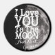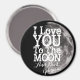 I Love You To The Moon And Back with Your Name Fridge Magnet. Image of the moon and romantic fully customisable texts "I love you to the moon and back" and your name round magnet. This beautiful personal moon magnet is fully customisable, add your name, texts and images! A very special personalised romantic moon magnet for your love, special friend or family member.