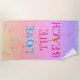 "I love (your text)" Beach Sunrise Footprints Beach Towel