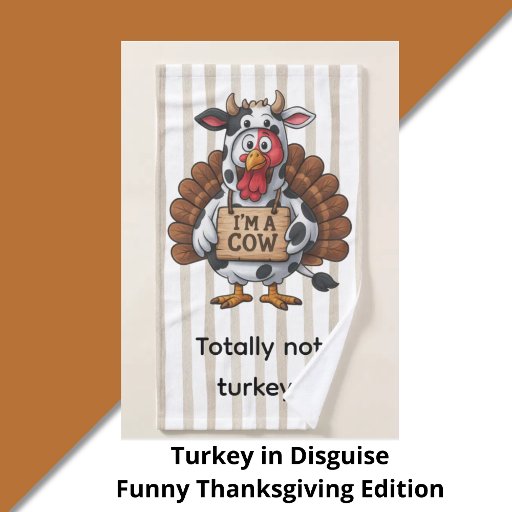 Serve up laughs with your Thanksgiving meal! This funny paper napkin features a turkey disguised as a cow, proudly holding a sign that says “Im a Cow.” Perfect for adding humor and charm to your holiday table, Friendsgiving party, or fall family gathering. A playful and festive detail that guests will love — because even the turkey deserves a disguise this season!