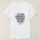 This cheeky design features the phrase “I’m on Energy Saving Mode” with a playful font and subtle graphic elements.