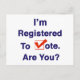 The 2026 primary and midterm general elections are here. Is your vote important? More than ever this election season, with the state offices and congress on the line. Don’t just register to vote and cast your ballot this year. Encourage others to register and get to the ballot box for the primaries and the general election in November. Use these campaign materials to get out the vote for election day with the message: “I’m Registered to Vote. Are You?”. Remember: Our democracy depends on everyone’s participation. Voter registration is key.