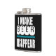 The flask itself is fine. It’s a cheap flask, obviously bought in bulk, however am prepared to overlook that. Given that it is a personalized item, I would have liked to have seen gift boxing instead of the generic packaging. Terrible printing, and/or quality. It’s a cheap, tacky vinyl. It is not cut straight and is also applied in a way that it is overhanging the bottom, causing the glue to catch on items and it will eventually roll and tear, damaging the wrap.
