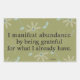 I Manifest Abundance By Being Grateful Affirmation Rectangular Sticker