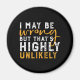 I May Be Wrong But That's Highly Unlikely. Funny quote design for those who enjoy humour, sarcasm, pun, jokes and witty sarcastic saying. This cool typography merchandise is great to spread some fun and laugh. Light up your day and make someone smile today. Great Christmas gift and birthday present for friends and families.