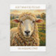 A cute postcard to keep in touch with someone and say hi and I miss you, with a cute ewe pun with an adorable impasto style sheep on an old rustic farm looking at you.