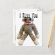 A cute sock monkey postcard saying I Miss You and with an optional custom message area on the back side of the card.