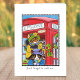 "Don't forget to call me". Cute cat greetings card featuring two well-dressed kitties phoning home! You can customise the text if you'd like to add your own caption and message inside.