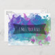 This bold, bright postcard is perfect for dropping a note to say hello when you can't visit in person. The background is covered in splashes of paints in shades of pink, purple, blue, teal and green. Over that is a partially-opaque black horizontal badge overlaying the centre. The message, "I Miss Your Hugs" is rendered in a modern, casual font. Both the message and the font can be changed to whatever you'd like it to say. Likewise, with the overlay and background separate, you might even choose to enlarge or re-position those elements too. Enjoy!
