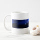 Monogrammed Mug with I + blue abstract image (light in the night). You can easily change monogram (font, colour, size and position) by clicking the customise button. Perfect for Father's Day or birthday.