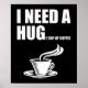 I Need A Huge Cup Of Coffee. This funny coffee accessory is a great coffee gift for men & women coffee lovers. Perfect for coffee drinkers & coffee & caffeine addicts. Sometimes you’d rather have a big mug of hot coffee in the morning instead of a hug! Do you love to drink coffee, cappuccino, lattes, mocha or espresso in the morning? Are you addicted to coffee & caffeine? If you can’t go a day without coffee, then this design is for you! Features a graphic of a cup of steaming coffee.