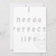 This design features a whimsical and minimalist aesthetic. It includes the phrase "I need a perfect life" written in a playful, uneven grey font that gives a casual, hand-drawn effect. Below the text is an adorable cartoon-style illustration of a small, smiling cat. The cat has large eyes, a heart-shaped nose, and wears a collar with a bell, enhancing its cute and friendly appearance. The overall design has a soft, light-grey colour scheme and conveys a mix of charm and humour, perfect for products aimed at cat lovers or those who enjoy lighthearted expressions.
