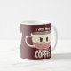Mug version, With artwork featuring a cute but angry little coffee mug with tired bags under it's eyes. It really needs more coffee! Perfect for people who love to drink coffee a lot! Coffee lovers who definitely need more coffee to be productive in the day will definitely appreciate this cute and funny design! Artwork by Sarah Richford ( TechraNova )