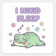 Adorable sleepy frog lying down with “I NEED SLEEP” text. Perfect for tired students and late-night workers. Great for cosy and relatable vibes.
