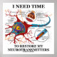 Showcase your wry neurological attitude with this anatomical, biological poster featuring all key parts of neuron / synapse along with the following saying for anyone tired now and then: "I Need Time To Restore My Neurotransmitters". Great geek attitude poster gift for all who need to recuperate from time to time!