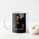 Start your day with a sip of something full bodied—and a side of undead wit. This gothic mug features a dapper vampire toasting the night with a crimson drink and a bottle labelled “Vintage Full Bodied,” all set against a moonlit castle backdrop. The quote “I never drink… wine” adds a deliciously dark twist, perfect for horror fans who like their humour dry and their coffee darker than their souls.