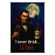 Make a bold statement with this photo enlargement featuring a dashing vampire, a bottle labelled “Vintage Full Bodied,” and the iconic quote “I never drink… wine.” Set against a moonlit castle backdrop, this cinematic composition blends gothic elegance with campy horror—perfect for adding a touch of undead sophistication to any space.