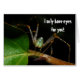 From Tico Puppy Productions comes a new line of greeting cards called "Disturbing Sentiments". These twisted and sometimes sick greeting cards are perfect for those who have a screwed up sense of humour, like me. In this card a Lynx spider is showing off it's front two of several eyes in a lovingly creepy way. Show you care while still being disturbed.