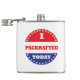 The flask itself is fine. It’s a cheap flask, obviously bought in bulk, however am prepared to overlook that. Given that it is a personalized item, I would have liked to have seen gift boxing instead of the generic packaging. Terrible printing, and/or quality. It’s a cheap, tacky vinyl. It is not cut straight and is also applied in a way that it is overhanging the bottom, causing the glue to catch on items and it will eventually roll and tear, damaging the wrap.