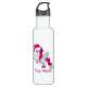 Water bottle with a funny saying: I poop magic. Designed with a white winged unicorn with pink mane, tail and hooves. The horn has rings of rainbow colour and looks like a candy lollipop. This cute unicorn is rearing up on its back legs. Sweet pink heart on its cheek and long girly eyelashes. A rainbow beside the word magic.