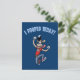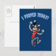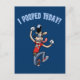 A retro cartoon dog in celebratory leap, with, "I pooped today!" in arched lettering above.