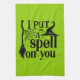 This classic Halloween design features the spooky phrase "I Put a Spell on You" in a bold, gothic-inspired font. The black and white colour scheme enhances the eerie atmosphere, making the design perfect for the Halloween season. Accompanying the text are iconic witchy elements, including a pointed witch's hat, a broomstick, a spider web, and a tiny spider, all arranged to create a bewitching composition. The subtle detailing of dots around the text adds a touch of magical charm.