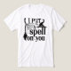 This classic Halloween design features the spooky phrase "I Put a Spell on You" in a bold, gothic-inspired font. The black and white colour scheme enhances the eerie atmosphere, making the design perfect for the Halloween season. Accompanying the text are iconic witchy elements, including a pointed witch's hat, a broomstick, a spider web, and a tiny spider, all arranged to create a bewitching composition. The subtle detailing of dots around the text adds a touch of magical charm.