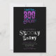 Text on the invitation alternates between stark white and light purple, providing a striking contrast that ensures readability while maintaining the eerie atmosphere. The phrase "spooky party" is presented in a horror movie cut-from-magazines letter font, often referred to as ransom note or poison pen style. This unique font choice adds an extra layer of creepiness and horror, amplifying the suspense and excitement for your event.