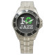 Has heft and feel of expensive stainless steel quartz watches. Good band with safety catch. I removed links, which is easy because engraved arrows show direction to push the linking pins. As always by this seller, the image (a railroad logo) is a perfect reproduction of my emailed image, and is precisely spaced and aligned.