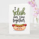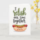 This greeting card pairs a sweet food joke with a warm message about spending time together. At the top, it says “I relish our time together,” with “relish” written larger in olive-green script and the rest in smaller black lettering. Below the text is a cute hot dog character sitting on a plain white background. The sausage is red and tucked into a golden bun, topped with a bright yellow mustard line and a green relish swirl. The hot dog has small black eyes and soft pink cheeks, giving it a happy, content look. The simple layout keeps your focus on the pun and the friendly character, making it feel romantic in a light, easy way. It’s a fun choice for a partner or a close friend, and the colors make the message pop without feeling busy ❤️