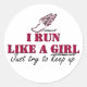 I run like a girl (script) classic round sticker
