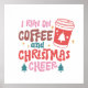 I Run On Coffee and Christmas Cheer multicolored typography with stars, trees and coffee mug.