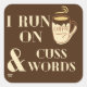 "I RUN ON COFFEE AND CUSSWORDS" funny coffee pun Square Sticker
