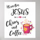 Brighten Your Home with this Unique "One of a Kind" Christian Poster! Featuring Inspirational Words..."I Run On Jesus, Chaos and Coffee"... and a Beautiful Mug of Hot Coffee Surrounded by Flowers and Hearts!