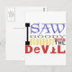 Famous line from the Crucible, “I Saw Goody Osbourne WithThe Devil” all in primary faded colouring with mismatched font/sizes, forming a square shape with the phrase.