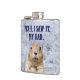 The flask itself is fine. It’s a cheap flask, obviously bought in bulk, however am prepared to overlook that. Given that it is a personalized item, I would have liked to have seen gift boxing instead of the generic packaging. Terrible printing, and/or quality. It’s a cheap, tacky vinyl. It is not cut straight and is also applied in a way that it is overhanging the bottom, causing the glue to catch on items and it will eventually roll and tear, damaging the wrap.