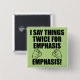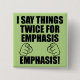 I Say Things Twice For Emphasis Funny Button Badge