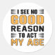Stand out from the crowd with our "I See No Good Reason To Act My Age" design, and let the world know that you're unapologetically young at heart. Express your individuality, defy expectations, and inject a dose of laughter into your everyday life with this playful and amusing design.