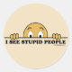 "I See Stupid People" parody of "I See Dead People". Funny saying with a cartoon peeking.