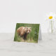 This postcard captures a striking portrait of a brown bear in Katmai National Park, Alaska. The bear stands in the lush green grass, looking directly towards the camera with an intense gaze. It's a powerful and engaging image that brings the viewer face-to-face with one of Alaska's most iconic wild animals.