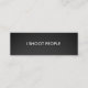 I shoot people. Professional Photographer Camera Lens Business Card. With Silver faux Metallic Background.