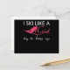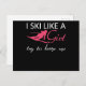 Cool ski saying with a female skier for kids, girls and women who love skiing as a passion on the snow in the ski resort.