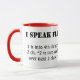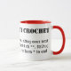 "I speak fluent crochet" on a mug, with crochet pattern instructions on it. It's a fun mug for a crocheter.