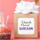 Enjoy this funny phrase "I Speak Fluent Sarcasm" displayed on any smooth surface. Black and purple lettering. White background. Perfect gift for friend or loved one.